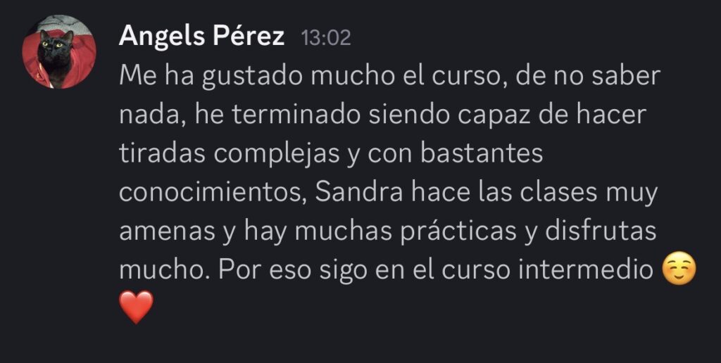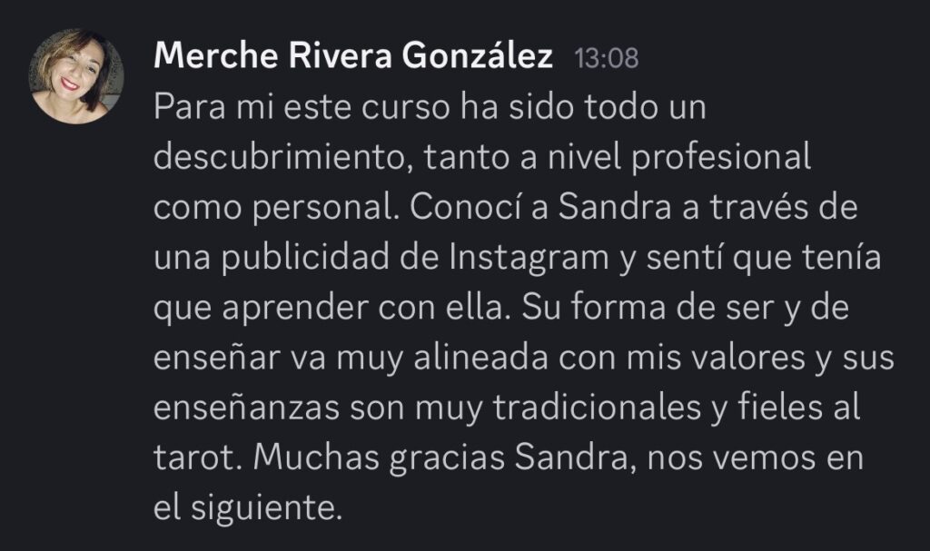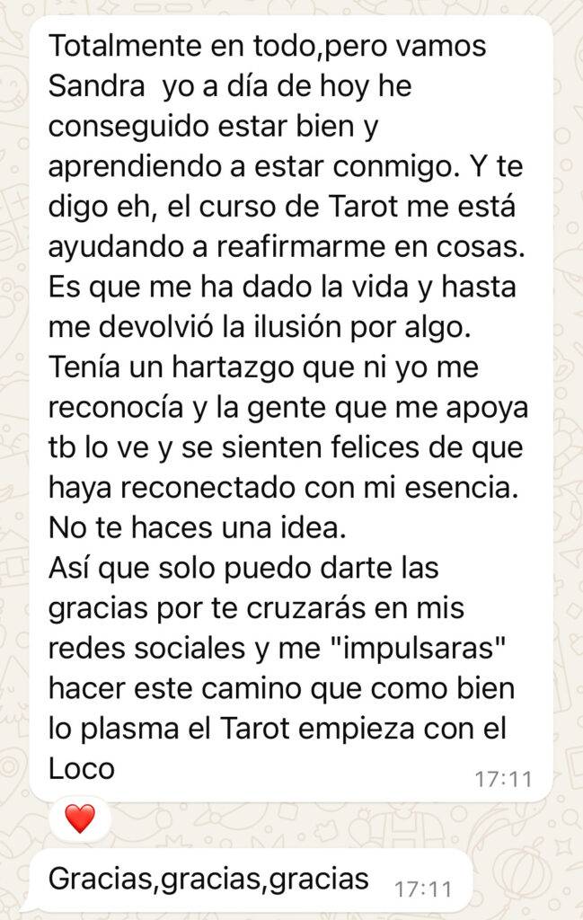 Comencé mi camino en el Tarot hace casi una década, formándome de forma personal con mi Maestra, y dando mis propios pasos al mismo tiempo. Así empecé haciendo tiradas para mi misma y mis seres queridos, lo que me ayudó en mi desarrollo personal y espiritual, y me dió una visión mucho más clara de mi camino. Ahora ayudo a personas como tú, a través de las formaciones, a conseguir lo mismo.